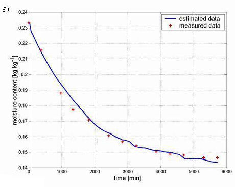 The results of the empirical experiment as well as results of the estimation are presented in Figure 3. Mean of differences between the estimated and measured grain moisture content is equal to 0.001 kg kg-1 d.b. (with the standard deviation of 0.003 kg kg-1 d.b.).