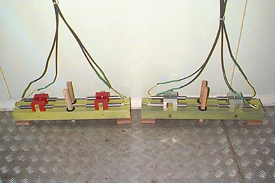 Centre-point deflection of the specimens was measured using Linear Variable Displacement Transducers (LVDT’S) with a resolution of +/-0.01 mm. The output from each transducer was monitored via a signal conditioning amplifier and recorded by a Data Taker DT505 data logger. A constant temperature instrumentation room was constructed to house the data logger and signal conditioning unit to obviate the effect of ambient temperature variation on the instrumentation. The deflection was monitored after 5, 10, 50, 100 and 500 min, and thereafter at 24 h intervals.