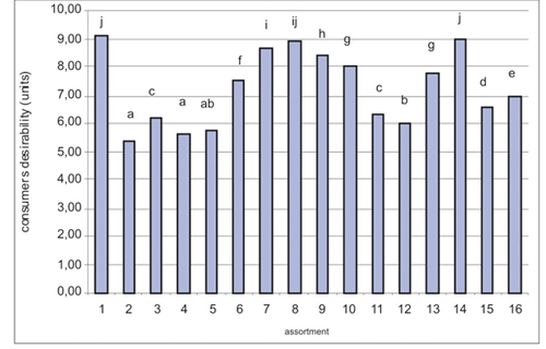 in terms of consumer desirability (hedonistic score), using a scaling method.