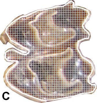 A, tooth length; B, tooth width; C, masticating surface of the tooth; D, masticating