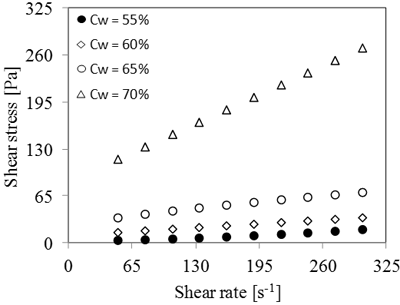 | Fig. 6. Rheological characteristics of fly ash slurry at different solid concentration |
