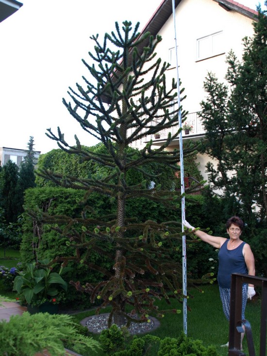 In the years 1998–2012 thirteen locations of cultivation of monkey puzzle tree of height of over 1.5 m were found in Szczecin. The oldest of the monkey puzzle trees cultivated since 1990 was characterized by the height of 6 m, trunk circumference of 59 cm at the height of 1.3 m over ground level and 14 whorls of sprouts.