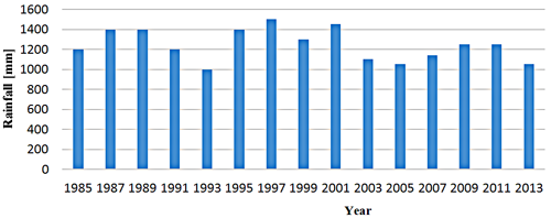 Table 1. Long-term seasonal rainfall distribution in Gozamen Woreda (1985–2014) with five years interval |