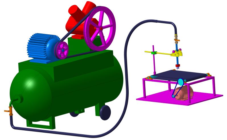 In order to make linear movement of nozzles and receptacle relative to each other, rubber conveyer and electromotor were used. The conveyor was made from Viton Rubber tires which are safe for food health. To change the linear velocity of conveyors, the rotational velocity of the electromotor was changed using an invertor (SV 015ic5-1F, LS industrial systems, China). The distance between the receptacles and the nozzles outlet were set using vertical guide shaft. A horizontal guide shaft was used to fix the nozzles location and examine the effect of air-jet parameters on the area of the separated region in different locations of seeds on receptacle. Angle of impingement was set using changing angle mechanism as it was explained, thoroughly before (in the present work effect of angle of impingement was not examined). The pressure of the air increases in piston compressor and the high pressure flow of the air is transferred to experimental setup using pneumatic hoses. A switching valve was used to connect and disconnect the air flow.