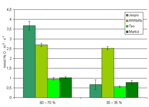 The photosynthetic efficiency is related to plant water relations, and especially with the process of transpiration. Open stomata make the penetration of CO2 easier, however it coincides with a loss of considerable amount of water in plant. An increased water deficit results in a loss in plant turgor and disturbed basic metabolic processes in cell as well as photosynthesis. With an increasing water deficit, the photosynthesis slows down first and then it is completely inhibited [17]. The inhibited photosynthesis decreases the level of respiratory substrates and decreases the demand for products of CO2 assimilation, which is due to an inhibited plant growth. However there increases the consumption of substrates used for the regeneration of damaged structures over stress and after the stress ceases to exist [16]. The water deficit may disturb the mobility of assimilates, which has an indirect effect on photosynthesis. If the drought coincides with the plant growth, then the meristems take away water and organic compounds from leaves placed in the lower plant part, which leads to lower leaf wilting, which, in turn, decreases the assimilation area and lowers the synthesis of organic compounds. A prolonged drought period results in an exhaustion of carbohydrate reserves, weakening the plant [15].