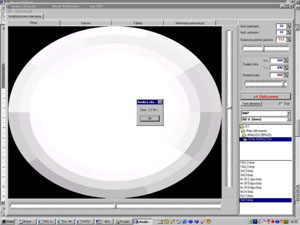Figure 5 shows the analysis of the picture after mixing when core distribution is achieved. Radius length of the observed analytical field is maximum (r5 = 460 pixels). With reference to the whole radius length essential intensity in gray color in the core of the field can be seen. Boundary of the cross section is free from big steel particle concentration. It can be assumed that the next distribution variances evaluated for 5 increasing radius lengths will undergo some changes respectively.