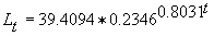 Weight from modified von Bertalanffy equations (g) |