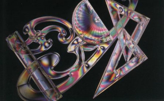 Experimental stress analysis is possible for models under external loading but also for models within which residual stresses are frozen. In Fig. 5 visualization of residual stresses within plastic school accessories are shown. It is the result of an injection moulding.